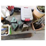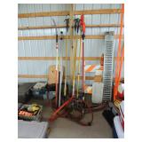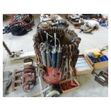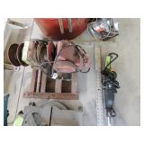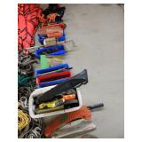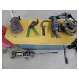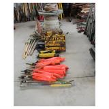 TOOLS Dust Hog, Wacker packer Stack-On tool box Tool boxes, Shop lights Bolt bins, Automotive oils Work bench 1 ton chainfall with trolley track Salamander heaters Aluminum stands, Misc. rope Shovels. Pruners, post pounder Hydraulic pruners Safety flags Axes, sledge hammers Misc. hose, Qty. of hand tools Vacuum, Stainless table Snatch blocks Wheel measuring devices Job box, chains, binders 2 way radios Metal cabinets, File cabinets Battery powered grease guns Freon reclaimer Solid-ox welder/brazer Drum mover, appliance dolly Transit set. Laser Bench grinder, Large vise Power hand tools Chain falls, Cutoff saw Porta power, Grease guns Metal stakes, chocks, straps Barrel pump Gas powered concrete saw Shop table. Air hoses Engine hoist and stand Safety harness, pole climbers