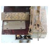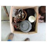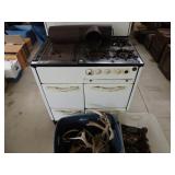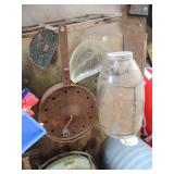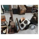 ANTIQUES AND COLLECTABLES Glass minnow trap Hand planters Oil bottles and spouts Lamp Medicine cabinets Signs, model cars Sewing machine Ice skates, License plates Pitcher pump Stool, stove, insulators Burner, tools Several player piano rolls Doors, metal art Igloo cooler Cow bell, large anvils Metal bread box Trunks, wooden shelf Gibson refrigerator Silver tea sets Pulleys, crocks, antlers Gas range, pots and pans Chairs , magazines DNR county map book, 1953 Duck decoys Hall tree, dresser Wooden clamps, watches, books