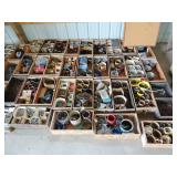 TRUCK PARTS Diesel compression test set Fault scanner for large trucks Trailer light tester Qty. of air and oil filters Radiators, Exhaust parts Brake drums, Mirrors Shocks, springs Starters, alternators Pintle hitches Headers, intakes Qty. of hardware Remote control spotlights Bronco parts, Hitch parts Chevy 350 and Ford straight 6 Ford 351 Engines Transmissions, Drive shafts International 4800 series parts Ditchwitch parts, including trencher and carbide teeth Qty. of misc. vehicle parts Hi Ranger bucket cover
