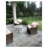 Beautiful home offers Baccarat chandelier & sconces, chenille fringe sofa & pair of matching chairs, dining room table with 10 chairs, carved server, burled coffee table, iron & glass coffee table, carved settee with French legs, set of 5 bar stools, sectional, pool table & fixture, large wine fridge, Cybex gym including weights and treadmill, Ethan Allen and Kreiss bedroom furniture, Asian style credenza, sofa, armoire, office furniture, file cabinets, Hess trucks & other toys, lots of assorted sconces, marble top bathroom vanity, oil paintings, bric-a-brac, wicker outdoor furniture, glass top outdoor table with 6 chairs & lounges & much more!! |