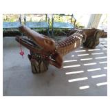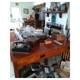 Sunday: 50% off most small items and 20% off furniture. This home is in Pirates Cove Subdivision which is on the Galveston Bay side of Stewart Road. Exit 12 mile road to the right to Grambo Boulevard, 14254 Grambo, Galveston 77554. Entire contents of home and all fixtures are for sale. If it can be detached/removed it can be purchased! FIRST COME/FIRST SERVED! Disassembly and removal of fixtures will take place the week of June 28th. The Estate Sale (6/26 & 6/27) is a treasure trove of farmhouse, mission and southwest furniture, decor and collectibles. Denim style sofa, loveseat and chair, chenille sofa, vintage cabinets, hutches, chests, tables, secretary cabinets, desks, primitive/rustic armoire, vintage oak armoire, hand-carved life size wooden Indian and hand-carved wooden alligator bench and hand-carved birds/alligator wooden sculpture, hand painted cow skull, hand crafted wooden skulling oars by Mast, Oar and Scull Specialists, Frank Collar, Oxford, England; vintage Bob McDougal sewing machine, area rugs, four post queen size bed and mattress set, four (4) chests of drawers, vintage oak secretary desk and drop leaf desk, rustic trunk, nautical, four (4) flat screen TVs, professional size massage table, metal file cabinets, computer desk/hutch, HP laser jet printer, computer monitor, home decor including mirrors and table top/floor lamps, gun safe, kitchen items including gas range, microwave, almost new dishwasher, bakeware/serveware, pots and pans, Keurig coffee maker, linens including vintage quilts, glassware and porcelains, Victorian (1850's) nodder figurines, Waterford candlesticks, pottery collection, Fiesta dinnerware, china, Camel cigarettes collectibles, lighters collection, vintage books, cameras and games, three (3) refigerators (stainless freezer on bottom, white freezer on bottom and white side-by-side), small chest freezer, washer and dryer, patio furniture including wrought iron and wicker, power and hand tools, lawn tools, fishing items/poles, elevated wood garden planter stands, holiday decor, and MUCH more! ALL HOME FIXTURES ARE FOR SALE! If it can be detached/removed it is for sale! Residential service lift (max. capacity 1,000 lbs.), central air/heat units and two window air conditioner units, gas stove, dishwasher, all plumbing and electrical fixtures, ceiling fans, light fixtures, four (4) patio doors, motorized rolling shutter systems for patio windows, windows, interior and exterior doors, lumber, garage doors and garage door openers, wooden garage door gates, outside light fixtures, decking, and much more! Karacostas Estate Sale Services, 409-771-3544