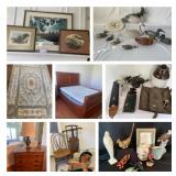 The owners of this home selected well made furniture by Pennsylvania House, Colonial Furniture, and several pieces of Amish origin. Their art preferences varied from Asian wood block scenes, watercolors by Mercer and prints by Gary Duchette. Lots of kitchen items including small appliances, glassware and china sets. Pet free and smoke free home.