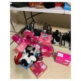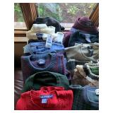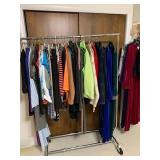ladies clothing, casual & dress shoes, jackets, many with tags etc.. mens polo shirts, slacks, shorts, vests, shoes, many with tags etc..