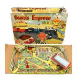 19 MARX-TRONIC SET W/TIN L&T, 3 4/6 FRTS, T&T, W/SET OB
