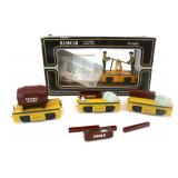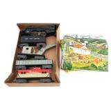 36 TIN LOCO, PLAS. TENDER, 3 PLAS. FRTS W/CRANE, T&T, W/SET OB