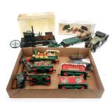 33 490 L&T, 3 PLAS. 4-WHEEL FRTS W/CRANE, T&T, W/SET OB + PLAS. CW SET TRACK, KEY W/SET OB