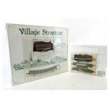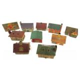 55 SQUARE STATION TATTERED SET OB, ACCESSORIES, 6/4 CARS, BLACK TRACK, NO LOCO