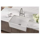 Elkay Fireclay SWUF28179WH Single Bowl Farmhouse Sink , White , 30 Inch Sink Dimensions: 30" x 19-15/16" x 9-1/8" Min. Cabinet Size: 33" FARMHOUSE DESIGN: The sink material is extended to the front panel of the sink, adding a stylish design element to your kitchen. REVERSIBLE DESIGN: Sink can be installed with either a traditional flat front or with a decorative band feature at the top. NEW! MSRP: $362 No refunds after the item has left the building.(27) |