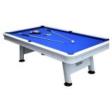Hathaway Alpine 8-ft Outdoor Pool Table with Aluminum Frame and Waterproof, UV-Resistant Felt - Includes Accessories, White PERFECT FOR PATIOS - This gorgeous table stands up to the harshest elements. UV-resistant felt provides protection against rain and sun. Its tough, aluminum frame ensures long-lasting, dependable durability. TOURNAMENT READY - Enjoy responsive, accurate action with the Alpine's pro-ready, K-55 gum rubber cushions. Its weather-resistant felt stays firm and level, regardless of the weather. Bring exciting, action-packed tournaments to your yard, deck or patio. Comes out of box, missing pieces! Pls come preview before bidding!! MSRP: $2,045 |
