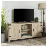 Walker Edison Georgetown Modern Farmhouse Double Barn Door TV Stand for TVs up to 65 Inches, 58 Inch, White Oak Dimensions: 25” H x 15.375” D x 58” L, Open storage cubby: 9.25” H x 13.75” D x 21” L, Storage cabinet: 19.375” H x 13.75” D x 16” L Top surface supports up to 150 Ibs. and 3 adjustable shelves support up to 30 Ibs. each Supports TVs up to 65” 2 cord management ports keep cables tidy Comes in previously opened box, Pls come preview! MSRP: $211 |