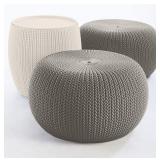 Keter Urban Knit Pouf Ottoman Set of 2 with Storage Table for Patio and Room Décor-Perfect for Balcony, Deck, and Outdoor Seating, Cream & Taupe RESIN CONSTRUCTION: Made out of durable, rust-proof, all-weather polypropylene resin for exceptional durability DURABLE AND STRONG: Weather-resistant polypropylene construction prevents rusting, peeling and denting - unlike real Knit SEATING CAPACITY: Tough polypropylene resin construction seating poufs hold up to 242 pounds each HIDDEN STORAGE: The table provides 10 gallons of storage space. Ideal for everything from patio furniture to kids’ tea parties to the corner of your living room NEW! MSRP: $138 No refunds after the item has left the building. |