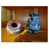 Pottery & Sculptures: Reyes Panana Jemez Pueblo Native American Koshari Clown Storyteller, Jemez Pueblo Wedding Vase by Marcella Yepa, Jemez Pueblo vase by Pauline Romero, Fred Schimer "Chiefs" pot, Renee Margolin Pottery, Weller Pottery, Royal Heager pitcher,