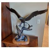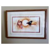 Art: Race Courses "Lady in Red in Ascot" oil by Elena Eros, Signed A.P. "Warriors of the Wind" by Jim Prindiville, Signed and Numbered "Our Father the Sun" by Neil David Sr., Art Menchego, David Paul, Trevor V. Swanson, "The High Lonesome" Eagle bronze sculpture by Doug Kailey, Jonathan Somaoang Milo Natural Bark Edge Wood Bowl