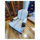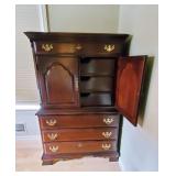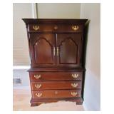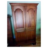 Furniture and Lamps: Stickley Panel Sleigh King bed w/ low profile footboard, Beautyrest Adjustable Base w/ remote and Stearns & Foster Hurston Luxury Firm Euro Pillow Top King Mattress, Stickley cherry dresser with mirror, Stickley cherry Armoire, Bob Timberlake Traditional Cherry Lingerie Chest, Mesquite and copper side table, Chocolate leather Myles Power Lift Recliner, Clayton Marcus brown sofa, Tiffany style lamp, Yellow Ribbed Case Glass Double Student Lamp, Hamilton mantle clock, Kaleen Portals wool rugs (2'3" x 7'6" and 8' x 11'),