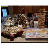 Collectables: MacKenzie-Childs Torquay Turtle Tureen w/ Ladle, MacKenzie-Childs Christmas Courtly Check Tree Dish, Wells Fargo & Co Overland Stagecoach U.S. Mail signed by Oscar M Cortes, Robert Shields Design Resin Horse Sculpture signed, Henry McKenna Kentucky Whiskey Liquor Jug, Snowbabies and Precious Moments
