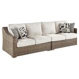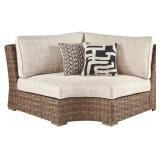 Signature Design by Ashley - Beachcroft Outdoor Corner Chair with Cushions - All-weather Wicker Frame - Beige