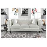 Divano Roma Furniture Classic Large Living Room Bonded Leather Scroll Arm Chesterfield Sofa (White)