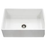 Houzer PTG-4300 Apron-Front Fireclay 33-inch sinks feature sharp corners with modern lines that add a European flair to contemporary kitchen designs with a traditional accent. Fired at high 2200 degrees Fahrenheit, Houzer's proprietary clay and mineral blend fuses with the nonporous glaze, creating a luxurious, glossy, cool-to-the-touch finish that is chip, crack, and scratch resistant. The bowl measures 31.3125-inches by 18.25-inches by 9.25-inches deep and is supplied with instructions.
