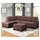 Harper & Bright Designs Sectional Sofa 3-Seat Sofa Set Couches with Chaise Lounge Storage Ottoman and Cup Holders for Living Room (Brown)(***1 Box only***)
