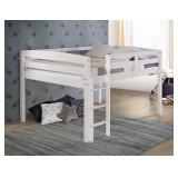This junior loft bed will free up floor space for extra storage or play area. It's a great compromise for a child that is not quite ready for a high loft or bunk bed. Your child will be delighted to sleep on this loft bed and to be able to enjoy the cozy area below the bed!