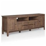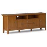 SIMPLIHOME Redmond SOLID WOOD Universal Tall TV Media Stand, 72 inch Wide, Farmhouse Rustic, Living Room Entertainment Center, Shelves, Cabinets, for Flat Screen TVs up to 60", Golden Brown
