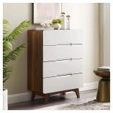 Modway Origin Contemporary Mid-Century Modern 4-Drawer Bedroom Chest in Walnut White