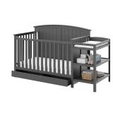 Storkcraft Steveston 4-IN-1 Convertible Crib and Changer with Drawer, Gray Easily Converts to Toddler Bed, Day Bed or Full Bed, 3 Position Adjustable Height Mattress