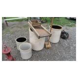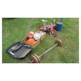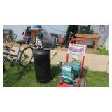* Air Tools *Lawn Mowers * Bicycles * Trailer * Industrial Cement Smoother * Yard Tools * Blue Mason Jars * Hand Tools * Pulleys * Extension Cords * Coleman Lanterns * Vintage Crocks * Odds & Ends Furniture (great for learning how to redo or paint ) Over 60 Box Lots With Misc Goodies * Fishing Poles * Plus So Much More *