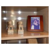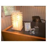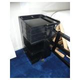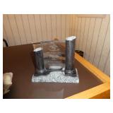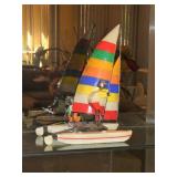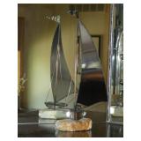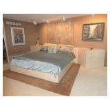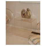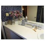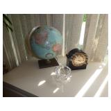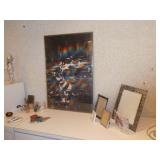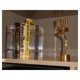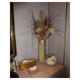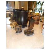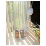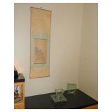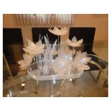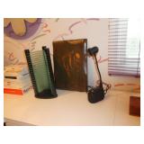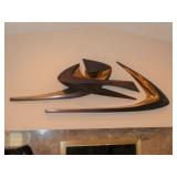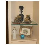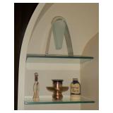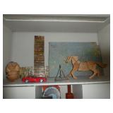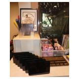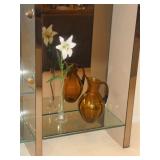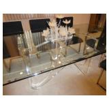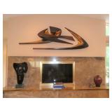 ANTIQUES, COLLECTIONS, & DECORATIVE ACCESSORIES · 4’ x 6’ Art Deco-style black/gray wool rug · Animal skulls · Frosted/clear acrylic lotus sculpture centerpiece · Dorothy Thorpe 3 pc acrylic candlestick sculpture · James Johnston Postmodernist brass vessel · Blenko amber pitcher · Naaman Israeli “onion” vase · Kaiser bisque vase · Anthony Stern English art glass vase · Pair of Astrolite lucite bookends · Barbara Dalton art pottery bowl · Silk plants and trees · Pair of carved soapstone foo dogs · Vintage Chinese hand painted vase · Vintage light up world globe · Vintage GE Bakelite clock · 3 Round BDI Ola “Flower” Mirrors · 70’s Chrome/leather magazine rack · Beatles Posters · Egyptian paintings on parchment · Iron Wall mirror w/ arrow finials · Artist made figural plant stand