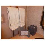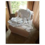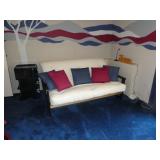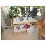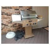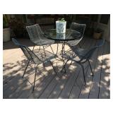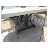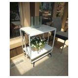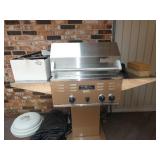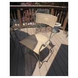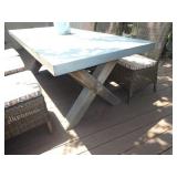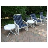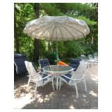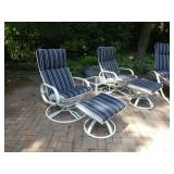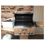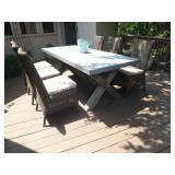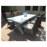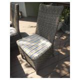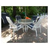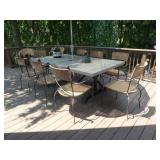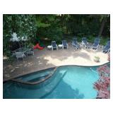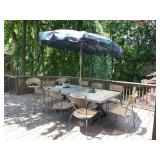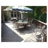 PATIO FURNITURE · TEC Patio II Infared gas grill with cover, steamer, etc. · Russell Woodard “Sculptura” patio furniture – 4 arm chairs, & 4 side chairs with bistro table · Pottery Barn Abbott Concrete & FSC Acacia 84” Dining Table w/ 6 Huntington All-Weather wicker dining chairs w/ cushions · Farm-style table w/ composite plank top and metal base w/ 8 wrought iron/wicker arm chairs · Pair wrought iron/wicker arched back arm chairs · Homecrest white metal table with umbrella & 4 armchairs · Pair White metal swivel rockers with cushions & ottomans · Pair white metal chaises with cushions · Pair white PVC armchairs · 4 Side tables
