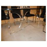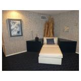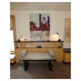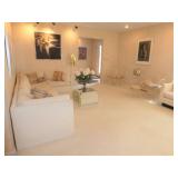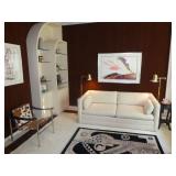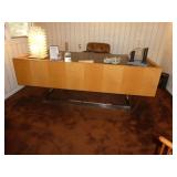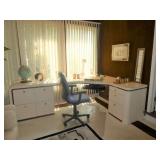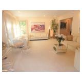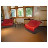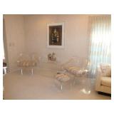 MODERN & MID-CENTURY FURNITURE, LIGHTING, ETC. · Robert Van Horn lucite sculptural ribbon lounge chairs – Pair with one ottoman, circa 1970’s · Ste. Marie & Laurent Canadian Mid-Century oak executive desk with chrome base and leather top · LaBarge Mid-Century Suede/Chrome wall mirror · Le Corbusier LC1 hide armchair · Gerard Van Den Berg for red Montis Butterfly chairs, circa 1980 – Pair · Wendell Castle Molar Group red fiberglass settee · Vintage Charles Pollack for Knoll leather/chrome desk chair · Milo Baughman-style Tuxedo sofas with recessed bases – Pair · 1970’s Thick lucite “S” base dining table w/ 8 ft. glass top · Set of 8 Milo Baughman-style chrome & black Ultrasuede dining chairs ( 2 arm, 6 side chairs) · Alvar Aalto for Artek white/birch Tea Trolley 901 · Custom 1970’s 10 Pc. modular sectional in rust fabric · 5 Pc. Off White modular sectional · 70’s Ivory lacquer cube side table · Neal Small-style Bent Lucite side table w/ magazine rack · David Allen for Knoll Exeter Chairs – Pair, c. 1983 · Gilbert Rohde-style Cloud Table · Pair Tan leather reclining lounge chairs by Design Environment w/ 1 ottoman · Milo Baughman aluminum dining table with glass top · 8 Effezeta Italian chrome dining chairs · Charlton 10 pc. Mid-Century white vinyl modular sectional w/ 4 navy gloss laminate 3-corner wedge tables · Pair Bertoia Diamond chairs with 2 ottomans, all with leather seat pads/covers · Albano Poli Italian stacked glass lamp for Poliarte c 1970’s · Chrome telescoping floor lamp · Mid-Century Modern oak storage wall unit w/ 2 sets of drawers, 1 cabinet, and shelving · 70’s Oak/oak laminate executive desk · 70’s wood desk with black hutch · Wood bench w/ storage seat · Set of 3 Vintage Rattan & Leather bar stools, made in Argentina in the manner of Michel Arnoult · LUCI Italian 6 bulb chrome bar floor lamp · Brass/Lucite swing arm floor lamps - Pair · George Kovacs “Barbell” desk lamp · Joe Colombo black Boby Mobile Office Organizer B34 · Asian-style black bench with upholstered gray cushion and 2 pillow rolls · Chinese Rosewood stand with inset marble top · 70’s Mirrored upright oval table · Navy fabric recliner · Futon/sofa · Artimede Milano Arcadia table in brown plastic · V-M Hifi · White laminate bedroom furniture, desk, & bookcase · Brown laminate desk · Janssen cherry spinet piano