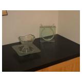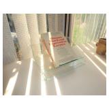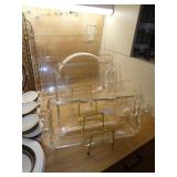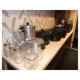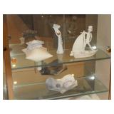 POTTERY, CHINA & CRYSTAL · Soholm Stentos Danish pottery bowl · Agnethe Jorgensen for B & G Danish porcelain standing horse · Orrefors · Crystal decanters · Rosenthal vase · George’s Briard lemon tree dessert set · Sunmarc stoneware “TicTacToe“ · Dance origami stoneware · Arita Genesis stoneware · Mikasa “metro“ dessert set · Mikasa “Deauville“ dinnerware · Mikasa elite “Narumi“ dinnerware · Vintage Lefton dessert set · Noritake Whitebrook dinnerware · Arcoroc fleur glass dishes · Etched glass vintage shrimp servers · Vintage pressed glass Tumbler set · Vintage deco juicer · Royal Doulton “Cadenza“ dinnerware set · Vintage Lucite serving pieces · Mid Century smoked glass stemware · Collection of KLM Delft houses