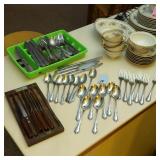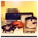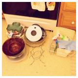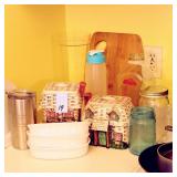 Lot of puzzles, Tupperware, and assorted kitchen items