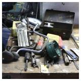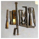 Lot of Antique Draw Blade, tools, solid iron, shears and a level