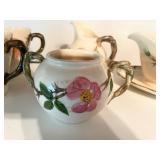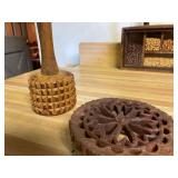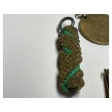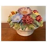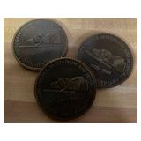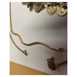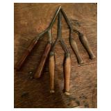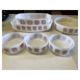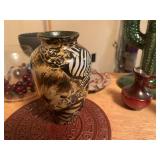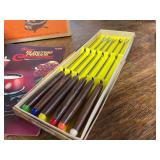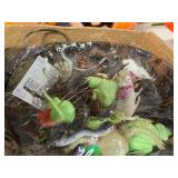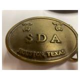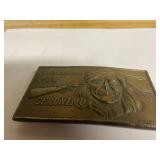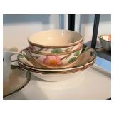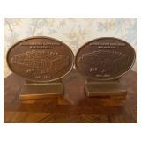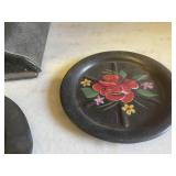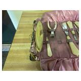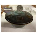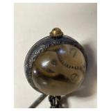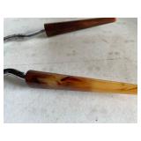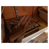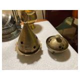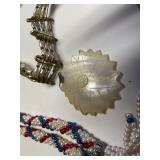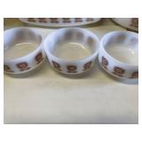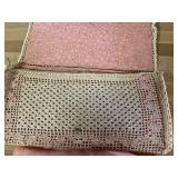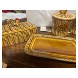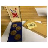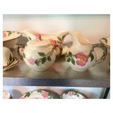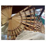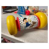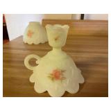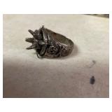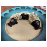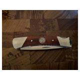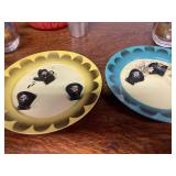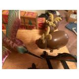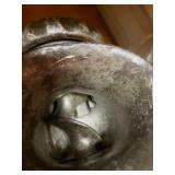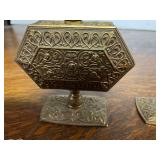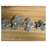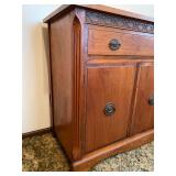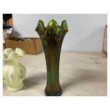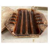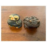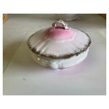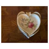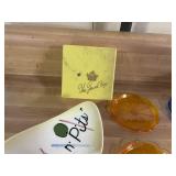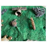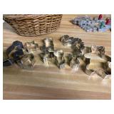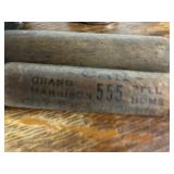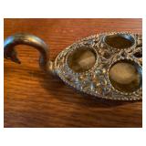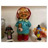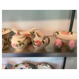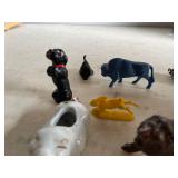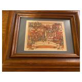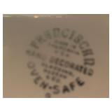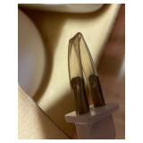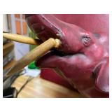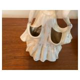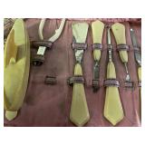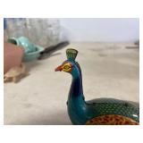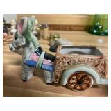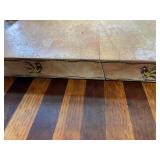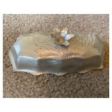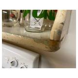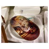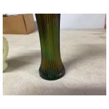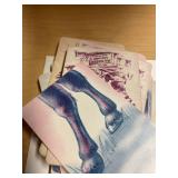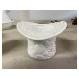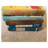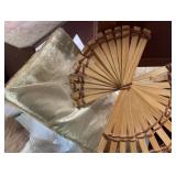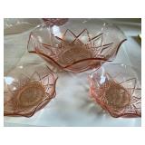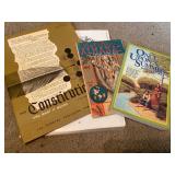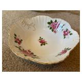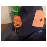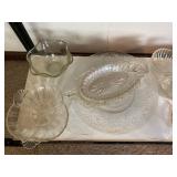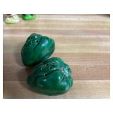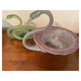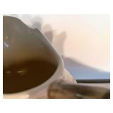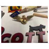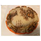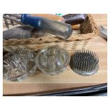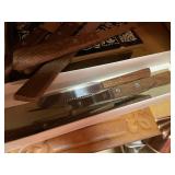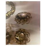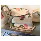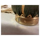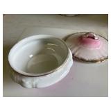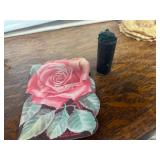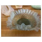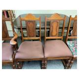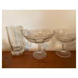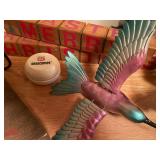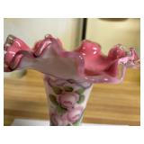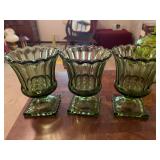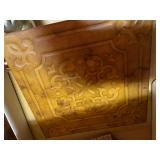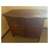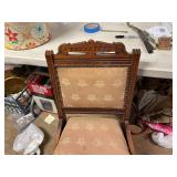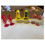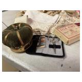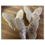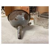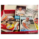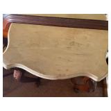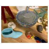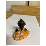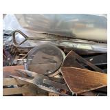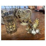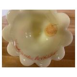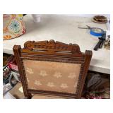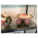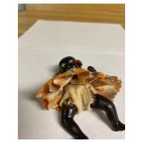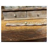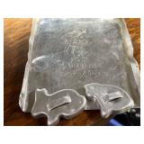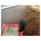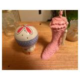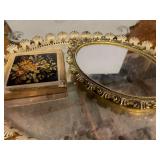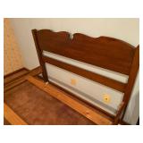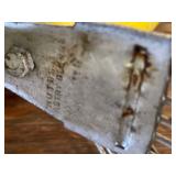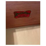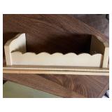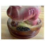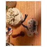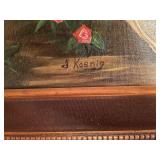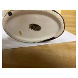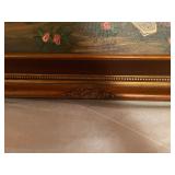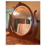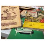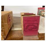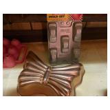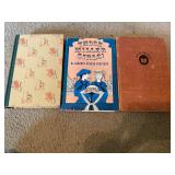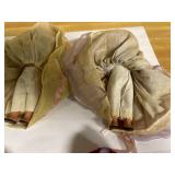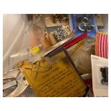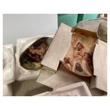27m Group of 13 KC Athletics Baseball Cards Jerry Lumpe, Dick Howser, Ed Charles, Norm Siebern, Lew Krause, and more. 27n Group of Jewelry, Thimbles and More Owl pin, leaf pin, eagle, thimbles, mop watch fob with praying hands, celluloid button hook. Candle sniffer, and more. 27q US Compass, Watch Fob, Cub Scout, and More Compass that looks like pocket watch marked US. Antique beautiful watch fob. Cub Scout book mark, bird whistle, knife case, and more. 27r 1966 Monkees Cards 11 - 1966 Monkees Cards. 27s Group of 60’s Baseball Cards Al Kaline, Hector Lopez, Minnie Minoso, Willie McCovey, Koufax Strikes out 15, 2 Chuck Schilling, and more. 27t Large Group of Gross Yucky Scary Trading Cards From the 69’s, you will die laughing, Spook stories, purple Terror Monster Series, green Horror Monster Series, and more. 28 Nice Vintage Desk Very nice wooden vintage desk with a small square knobbed drawer in the center. Approximately 41 x 25 x 30 inches. 29 French Style Antique Dresser With Mirror Very nice vintage dresser with a pink marble top, four drawers with ornate handles, and a beautiful mirror that is attached in the back but can be removed. It is approximately 42 x 13 x 30 inches for the dresser portion and the mirror is additional 3 ft tall. 30 Vintage Martha Washington Cabinet Very pretty dark wood Martha Washington cabinet with three center drawers and side panels that lift up. Approximately 28 x 14 x 30 inches. 30a Mid Century Large Wooden Cabinet Large wooden cabinet with top pull out drawer and cabinets below with brass handles. This appears to be solid wood and made by Border Queen in Fort Smith Arkansas. Approximately 4ft X 34 inX 18in. 31 Vintage Wood Desk Very nice oak desk with a center drawer. Approximately 48x30x29in. 31a Vintage Wooden Bed Full sized vintage wooden bed on rollers. 32 Antique Dresser with Mirror Nice brown antique dresser with detached vanity mirror. The vanity mirror needs to be rebolted on one side but otherwise is in good condition. The bottom dresser is 34x29x18 inches. The mirror is 39 x 35 inches. 200 Two Vintage Lady Head Vases Approximately four inches tall. One lady has her pearls and earrings and is marked Sonsco Japan. Green hat lady is unmarked. 201 Van Briggle Pottery Elephant Marked 47 Van Briggle, Colo Springs. Good condition. White elephant. 201a 6 Antique Dining Chairs Five side chairs and one arm chair. Looks like Oak, four chairs have brown fabric seats and two side chairs has different fabric. Sturdy chairs. 201b Antique Dining Table Could not find a leaf, but looks like should have one. Looks like top has been antiqued. 59x43.5x30. Has three legs on each side, and balls on each foot. 202 Set of Vintage Kodak Glasses 5 glasses, clear glass with red and gold Kodak. Approximately 5 inches tall. Good condition. 203 Very Nice West German Gotham Decanter Tags says Gotham Full Lead Crystal, West Germany. Heavy and good condition. 204 Electric Purple Carnival Glass Bowl Approximately 4 inches round. Persian electric purple medallion. Good condition. 205 Fenton Peach Crest Charleton HP Vase Beautiful hand painted pink roses. Approximately 10 inches tall. Good condition. Fenton peach crest charleton. 206 Vintage Little African American Doll Approximately 3.5 inches tall. Good condition for age. 207 Four Nancy Ann Story Book Dolls Two are marked story book and two are not. Good condition for age. 208 Two Little Cupies and Baby on a Chair 5 inch tall Cupie with blue wings and signed AN 1983. Little dressed Cupie with blue wings, looks like 1980 and WG scratched on her feet, and little baby on chair marked Ucagoco Japan. 209 Vintage Hard Plastic Wedding Party Dolls Bride and Groom and 5 bridesmaids. Bride and groom and two bridesmaids are in good condition. Other bridesmaids heads are off and some arms. All the pieces are present. All the girls have crocheted dresses and groom has plastic top hat. 210 Schmid Beatrix Potter Music Box Plays “King of the Road” Pigling Bland. Works. Beatrix Potter, Schmid. 211 Four Pieces of Frankoma Small pitcher and bowl. Covered wagon ashtray, hot plate and oval ashtray. All marked Frankoma and brown, tan and cream. 212 Three Pieces of Frankoma Covered pot, wagon wheel creamer and little flower pot. All green and brown and marked. Good condition. 212a Three Pieces of Frankoma 7 inch slanted bowl, 10 inch rectangle ashtray, and small 4 inch divided ashtray. All green and brown. 213 Pair of Small Art Glass Birds Brown and gold and cream, approximately 2 inches tall. 214 Amberina Candy Dish and Two Little Swans All look like Amberina, not signed and good condition. 215 Three Pieces of Blue Vintage Glassware Blue art glass fluted vase approximately 12 inches tall. Blue lidded dish with Fuller Brush tag. And blue oval dish approximately 12 inches long. All in good condition. 216 6 Vintage Butter Pats and 4 small Blue Willow plates 4 matching blue and white butter pats marked Johnson Brothers England, unmarked violets, and unmarked Blue Willow. 4 six inch Blue Willow plates marked Ridgeway England 1932. A few cracks on bottom. 217 Three Vintage Whimsical Figurines one is Josef Original Josef Original with tag, little boy playing marbles. Unmarked 7 inch tall elf chef. Some kind of holder dog? Dog is marked AYner. All cute little guys. 218 Vintage Cookie Cutters Approximately 19. Five vintage with red wooden handles. One with green wooden handle, two Christmas trees and cute Santa. 10 more not quite as vintage. 219 Three Pair of Vintage Salt and Pepper Shakers Pair of vintage angels, vintage green peppers, and vintage Mr. and Mrs. Egg, marked Hong Kong, they are plastic. First two are ceramic. Angels look like kissing angels. 220 Antique Chatillons Improved Spring Balance Scale New York, scale shows 50 pounds. 221 Two Vintage Enamel Wash Tubs and Dipper I grey enamel, and one white with black trim. Dipper is white and navy blue. 222 Vintage Red and White Plastic Bread Box Marked lustrous ware bread box number B 21 made 