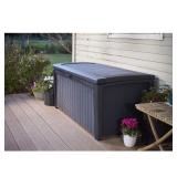 Keter 110 Gallon Resin Deck Box. Color-Gray. Maximize your outdoor deck storage space and contain your porch accessories, garden cushions, pool toys and tools away from any harsh weather conditions. Dimensions (L x W x H): 51 x 27.6 x 24.6 inches