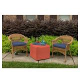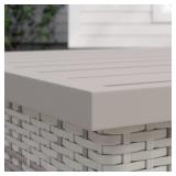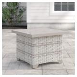 Falmouth Wicker/Rattan Side Table. Color-Vanilla Creme Crafted with an aluminum frame, this weather- and rust-resistant piece is wrapped in wicker in neutral creme tones with woven details for a bit of breezy style. Overall 18'' H x 24'' L x 24'' W