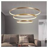 Dyal 3 - Light Unique Tiered LED Chandelier. Color-Gold. 100% Brand new LED chandeliers, modern design. Perfect for hanging anywhere in your home. 59.05" x 30.12"