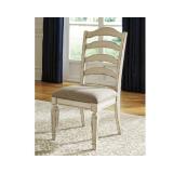 (Set of 2) Realyn Side Chair. Frame made of hardwood solids, oak and birch veneers; thick foam padding. Distressed white finish and beige upholstery. Dimensions: 24W x 19D x 42H in.