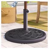 Stansberry Free Standing Umbrella Base. Color-Black. Crafted from cast stone, this rust- and weather-resistant design sports a classic bronze finish that complements most color palettes. Overall 1' 1'' H x 1' 9 1/2'' W x 1' 9 1/2'' D