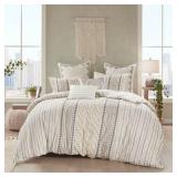 Jenkinsburg Comforter Set. KING/CAL KING. Color-Gray/Off White. Made of soft cotton, this reversible comforter set features a solid color back and a top embellished with geometric prints and tufted chenille accents that add dimension to the overall design. Two matching pillow shams complete this set's beautiful look. 92.0 In. X 104.0 In.