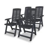 (Set of 4) Garden Chairs. Color-Black. The reclining chairs are made of durable plastic, which makes them weather resistant and easy to clean. 23.6" x 24" x 42.5"