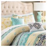 Filey Green; Yellow; Dark Blue Microfiber Modern & Contemporary Comforter Set. TWIN/TWIN XL. This unique collection features a mixture of medallions and tribal geometrics in stripes of yellow and green with pops of navy. 6" x 90"