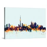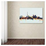 'Toronto Canada Skyline Blue' Graphic Art on Wrapped Canvas. This ready to hang, gallery-wrapped art piece features a watercolor skyline of Toronto, Canada. Overall 12'' H x 19'' W