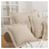 Parthenia Square Pillow Cover & Insert. Color-Natural. It strikes a square silhouette with flanged edges and hemstitching for a touch of classic polish. Overall 22'' H x 22'' W x 5'' D