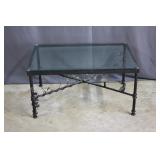 Ornate Wrought Iron Coffee Table with Glass Top. 18.t"T x 36"W x 24"D