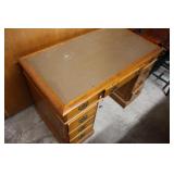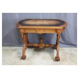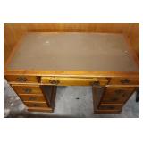 Leatherbound-Top Antique Wooden Desk. Heavily Damaged.