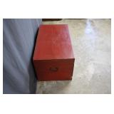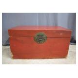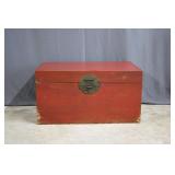 Red Painted Camphor Wood Trunk. 19.5"T x 36.5"W x 21"D
