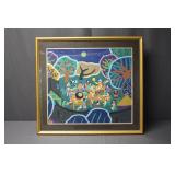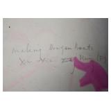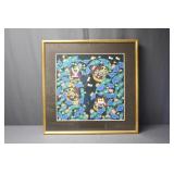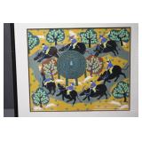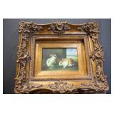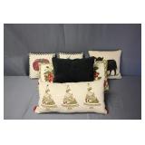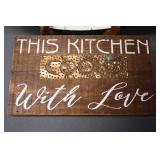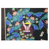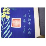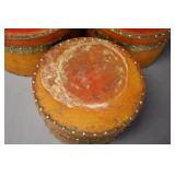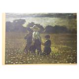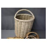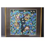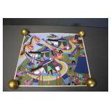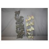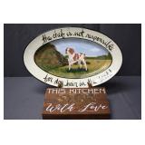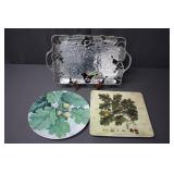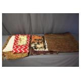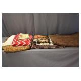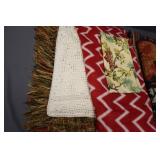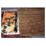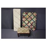 (2) Decorative Cloth Hanging Boards & Antique Upholstered Top Foot Stool