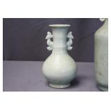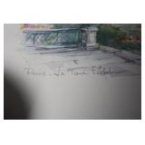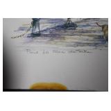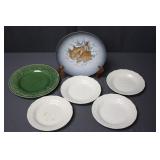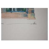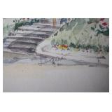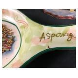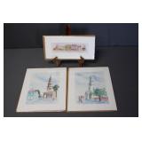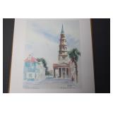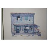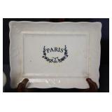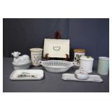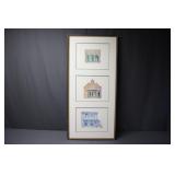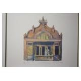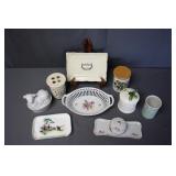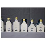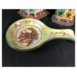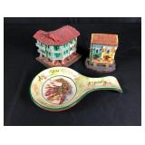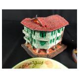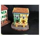 (2) The Little Island Hand-made Building Figurines from Singapore and Spoon Rest. Spoon rest has been repaired.